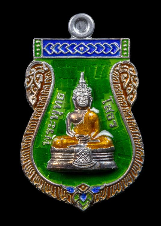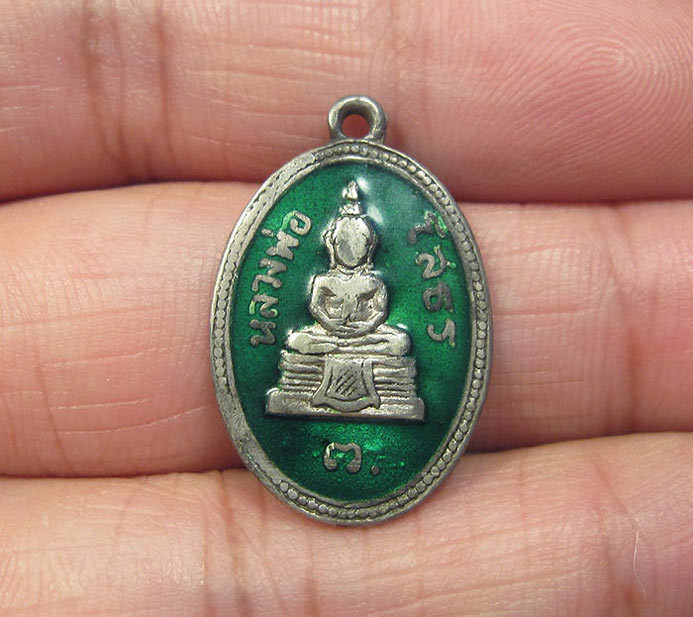 หรียญหลวงพ่อโสธร เนื้อเงินลงยาสีเขียว ปี2513 ยาเต็ม สร้างน้อยหายาก พร้อมบัตรรับรอง |