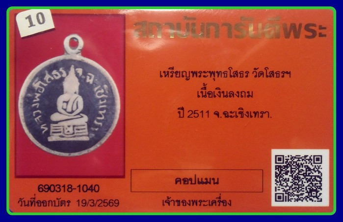 (เคาะแดง1900) +บัตรสมาคม เหรียญหลวงพ่อโสธรหลัง ภปร ปี 2509 |