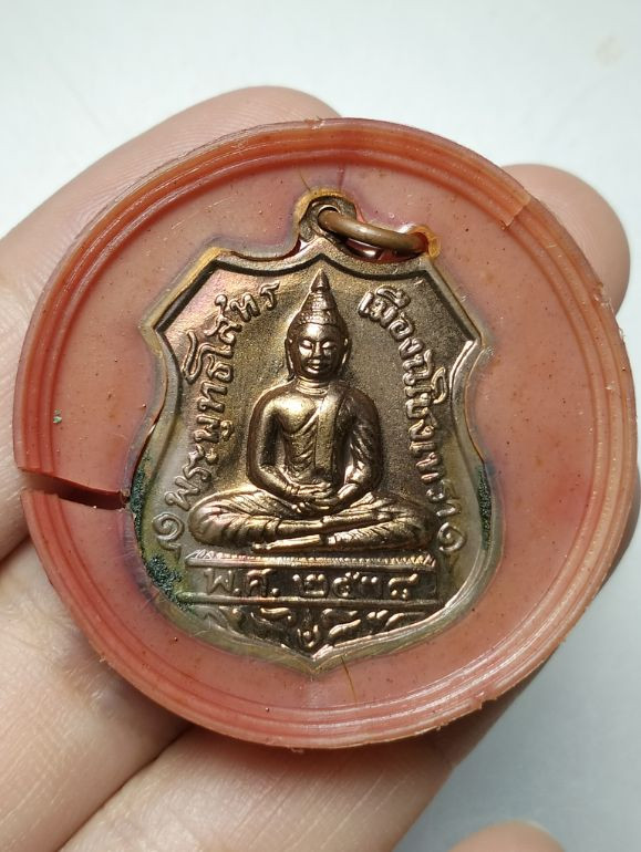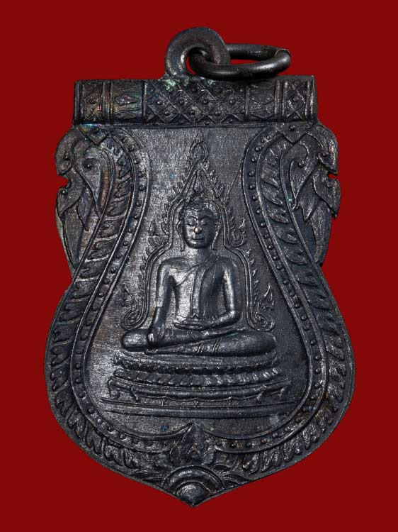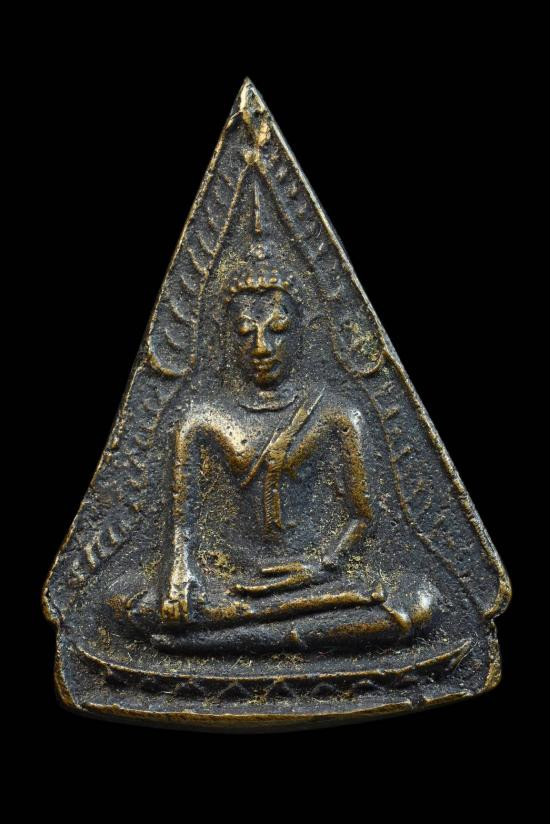 พระหล่อพระพุทธชินราช โลหะผสม เนื้อหาดีโลหะมีอายุ "ฐานกว้าง 2.3 cm สูง 3.2 cm." |