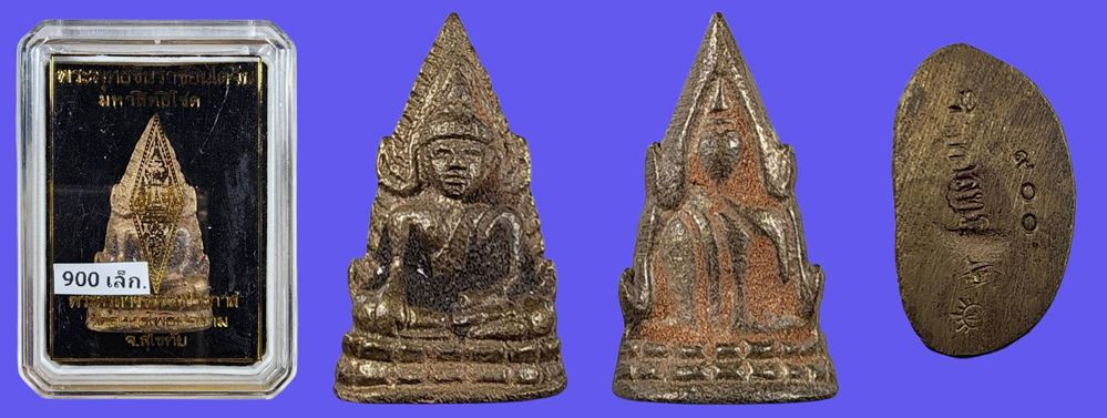 รูปหล่อโบราณพระพุทธชินราชอินโดจีน รุ่นมหาสิทธิโชค เนื้อชนวน พิมพ์เล็ก หมายเลข 900 สภาพสวยเดิมๆพร้อมกล่องครับ |