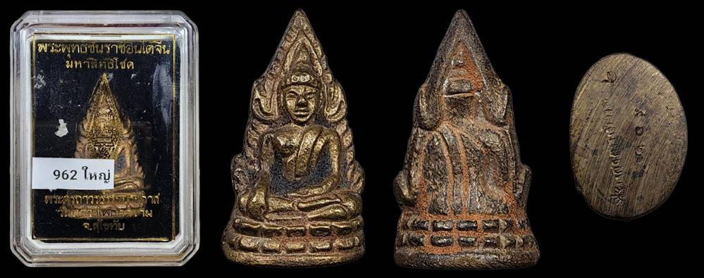 รูปหล่อโบราณพระพุทธชินราชอินโดจีน รุ่นมหาสิทธิโชค เนื้อชนวน พิมพ์ใหญ่ หมายเลข 962 สภาพสวยเดิมๆพร้อมกล่องครับ |