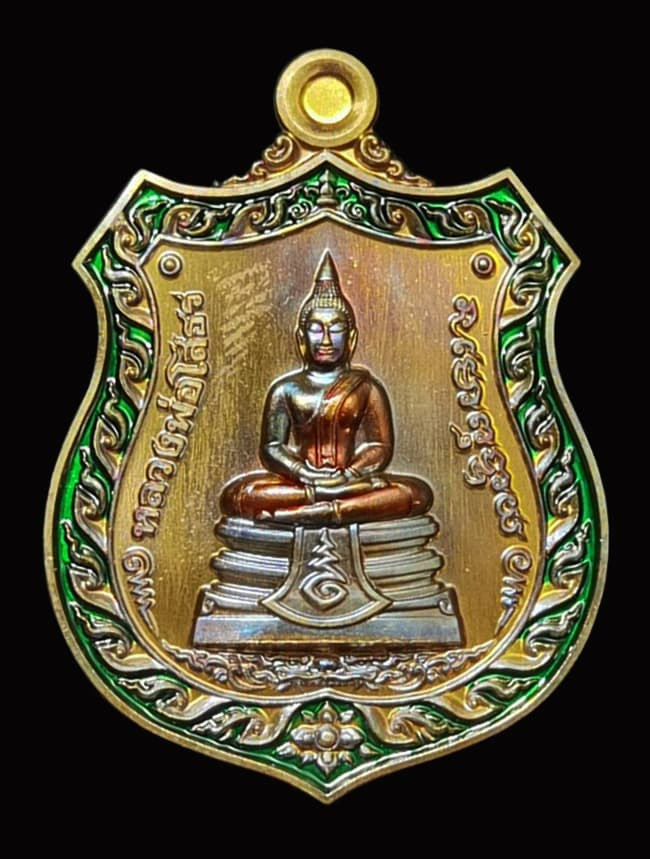 ( เลข 864 ) พระพุทธชินราชอินโดจีน (ย้อนยุค) รุ่นมหาจักรพรรดิ ปี 2545 เนื้อนวะโลหะผิวไฟดินไทย |