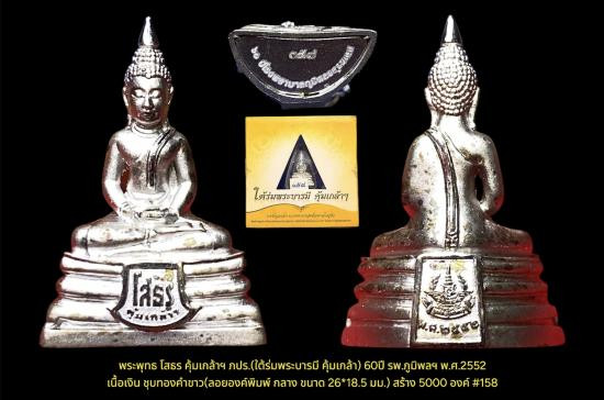 พระพุทธ โสธร คุ้มเกล้าฯ ภปร.(ใต้ร่มพระบารมี คุ้มเกล้า) 60ปี รพ.ภูมิพลฯ พ.ศ.2552 เนื้อเงิน ชุบทองคำขาว(ลอยองค์พิมพ์ กลาง ขนาด 26*18.5 มม.) สร้าง 5000 องค์ #158