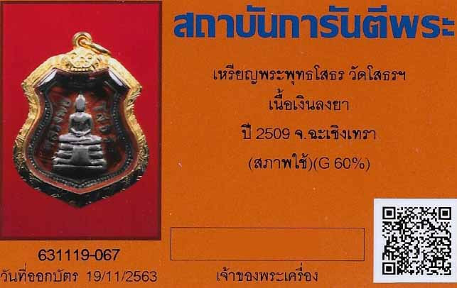 ลพ.โสธรเนื้อเงินลงยา(แดง)พ.ศ.๒๕๐๙(ไม่มีเลี่ยมทอง)+บัตรรับรองพระแท้*67 |