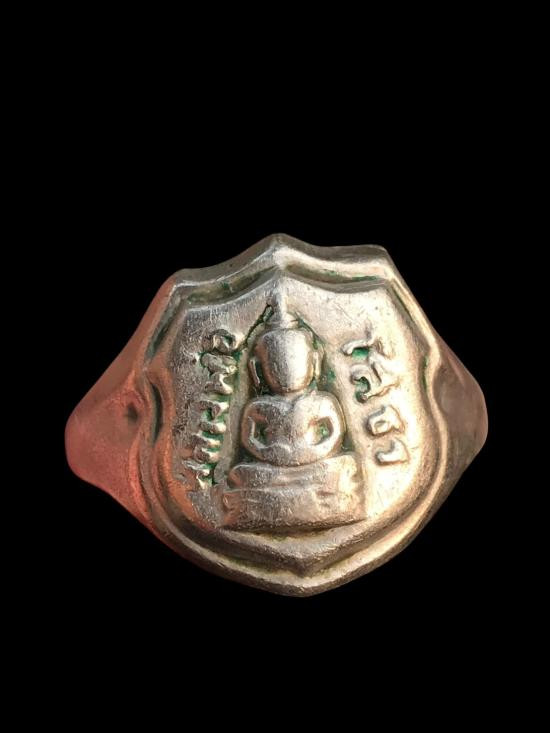 แหวนหลวงพ่อโสธร เนื้ออัลปาก้า ทรงโล่ห์ ไม่ทราบปี เก่ามีอายุ รับประกันพระแท้ตามกฏทุกประการ |