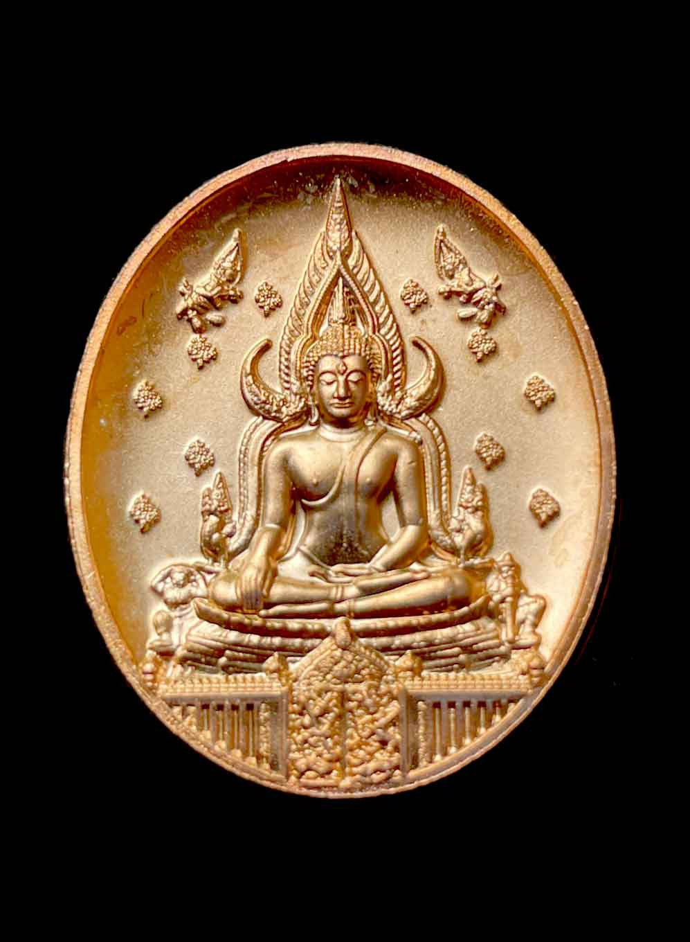 เคาะเดียวแดง เหรียญอาร์ม หลวงพ่อโสธร รุ่น มหามงคลย้อนยุค ฉลุลายยกองค์ย้อนยุค พ.ศ.๒๔๖๐ เนื้อบรอนซ์นอกชุบทอง เลข 1422 งานจิวเวอรี่ สวยๆไม่ผ่านการใช้ |