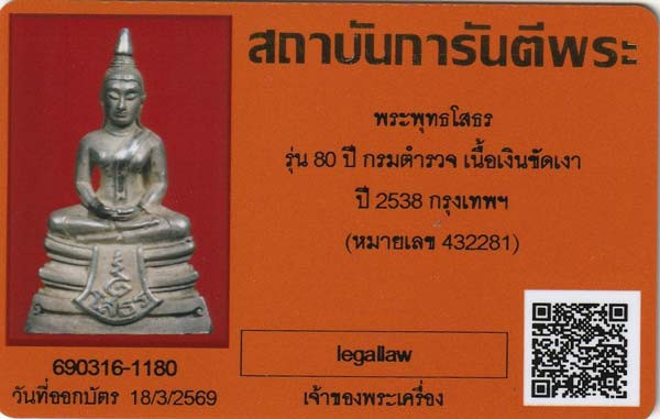 รูปหล่อ หลวงพ่อโสธร 100ปี ตำรวจแปดริ้ว เนื้อเงิน พร้อมกล่อง |