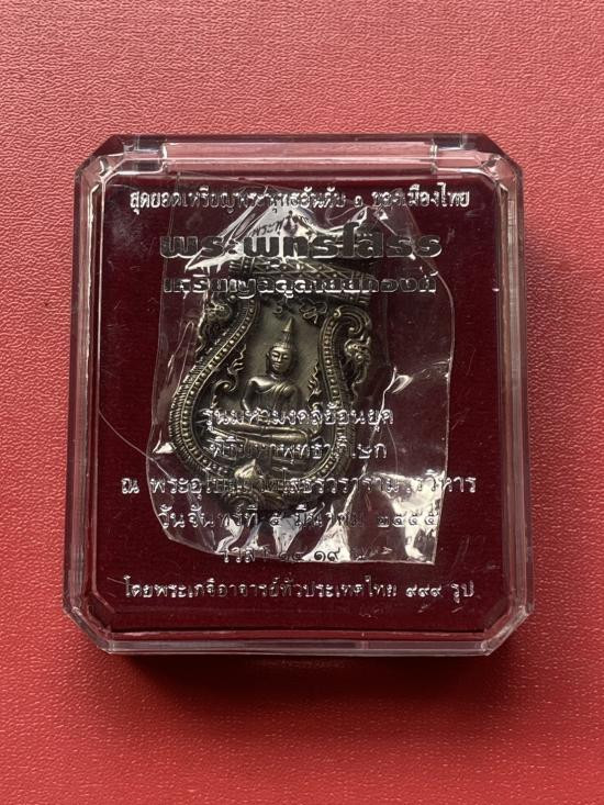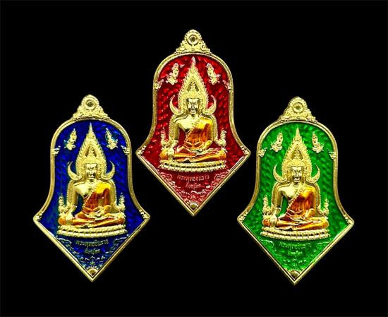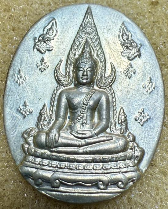 ** เคาะแรกแดงที่ 150 บาท ** พระพุทธชินราชลอยองค์ พิมพ์เล็ก เนื้อเงินชุบ 3 กษัตริย์ รุ่นเพราะแผ่นดินนี้คือแผนดินเกิด รุ่นแรก ปี 2548 หมายเลข 19066 |