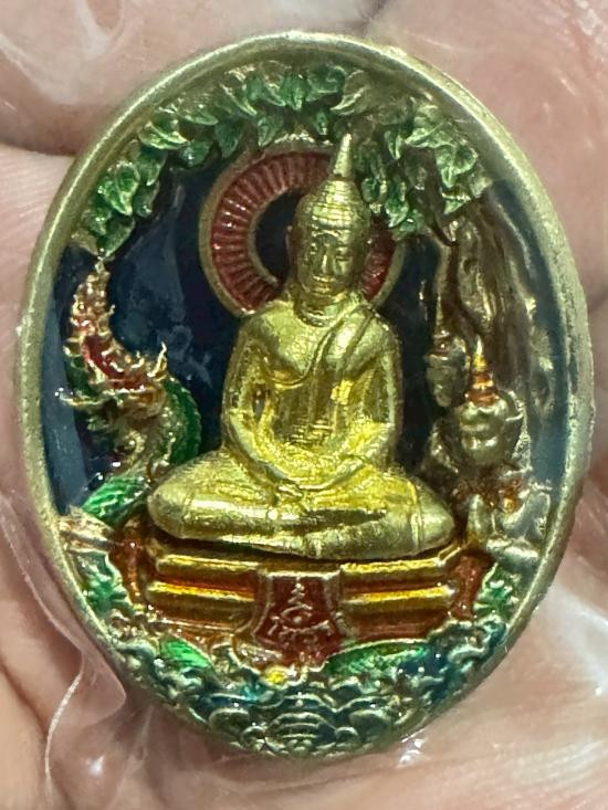 เหรียญหลวงพ่อโสธร รุ่นประวัติศาสตร์ ครบรอบ 255 ปี (วาระพิเศษ) หมายเลขสวย 98 เนื้อชุบทองลงยาน้ำเงิน ลงยาเครื่องทรง หลังลงยาพื้นแดงลงยาตราวัด ลงยาจีวร กล่องเดิม |