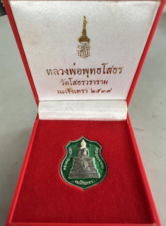 @ วัดใจ@ เหรียญอาร์มพระพุทธโสธร พระอุโบสถหลังใหม่ ปี 2538 (เนื้อเงินลงยาสีเขียว) พร้อมกล่องเดิม |