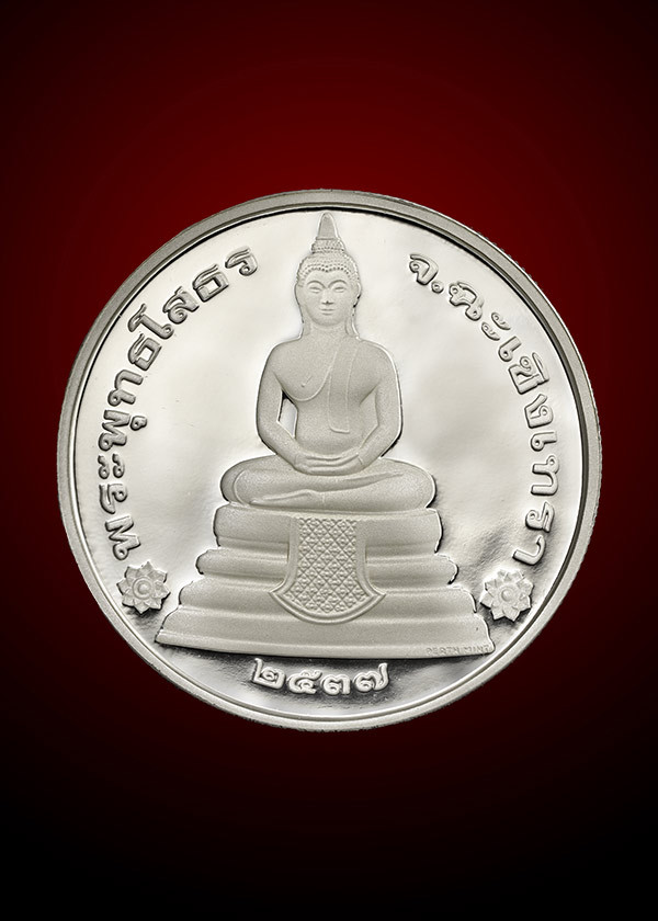 พระแท้24 พระพุทธโสธร รุ่นจตุพร ปี2538 ผลิตโดยโรยัลออสเตรเลียมินท์ ประเทศออสเตรเลีย เป็นเหรียญสองหน้า พิมพ์เล็ก เนื้อทองแดงนอกขัดเงา |