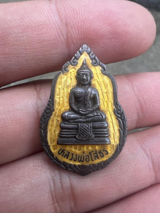 เหรียญหลวงพ่อโสธรกะไหล่ทองลงยา อีกด้านเป็นเนื้อกระเบื้อง ภาพตามรูปราคาเบาๆ |
