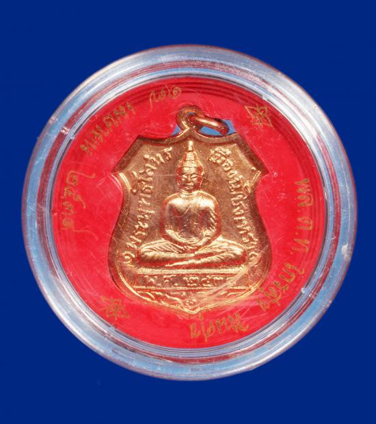 A1742.รูปหล่อ พระพุทธชินราช ที่ระลึกเททองหล่อพระประธาน วัดพยอมงาม ปี 2546 กล่องเดิม เคาะเดียวเเดง |