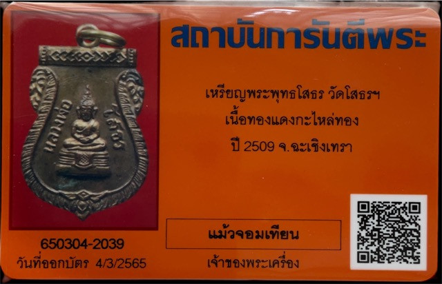 เหรียญเสมาเนื้อเงินลงยาสีฟ้า หลวงพ่อโสธร ปี2509 พร้อมเลี่ยมทองลงยาแกะลายหนาพร้อมบัตรการันตีพระ |