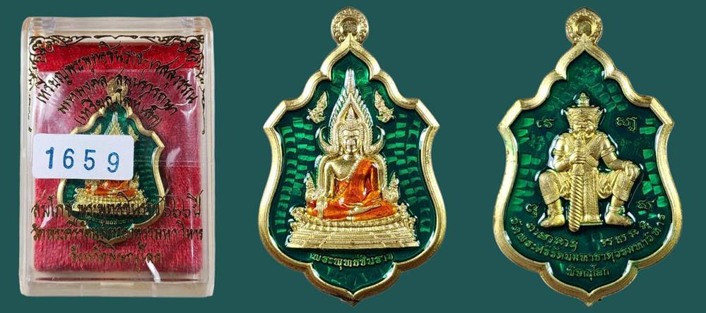 รูปหล่อโบราณพระพุทธชินราชอินโดจีน รุ่นมหาสิทธิโชค เนื้อชนวน พิมพ์กลาง หมายเลข 1517 สภาพสวยเดิมๆพร้อมกล่องครับ |