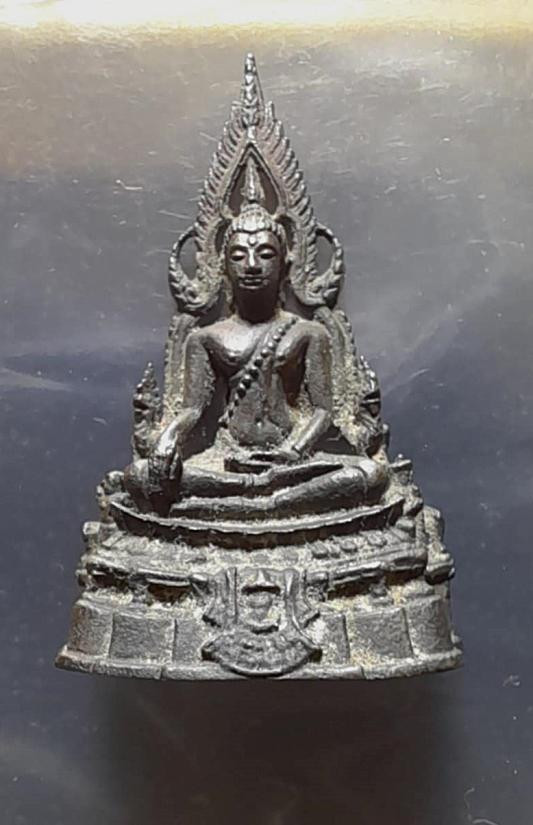 พระกริ่งพุทธชินราชรุ่นมาลาเบี่ยง เนื้อนวะพร้อมกล่อง เลข600 |