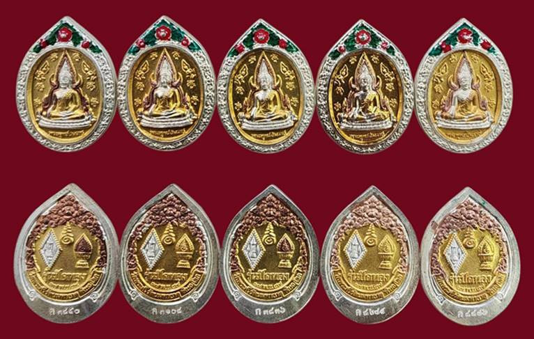 ( 5 องค์ ) เหรียญพระพุทธชินราช พิมพ์ รูปไข่ พิมพ์เล็ก เนื้อสามกษัตริย์ลงยา รุ่น ปิดทอง ปี 2547 สภาพสวยเดิมๆ มีโค๊คทุกองค์ครับ 2 |