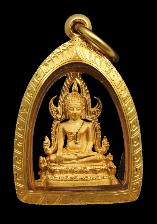 พระพุทธชินราชหล่อลอยองค์ รุ่น "ชินราชจันทร์เพ็ญ" เนื้อบรอนซ์นอกชุบทอง (กรรมการ) พิธีพุทธาภิเษกพระราชวังจันทน์ วันเป็งปุ๊ด |