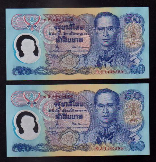 ## ธนบัตร 50 บาท ## กาญจนา ## 2 ฉบับ ## ไม่ผ่านการใช้ |