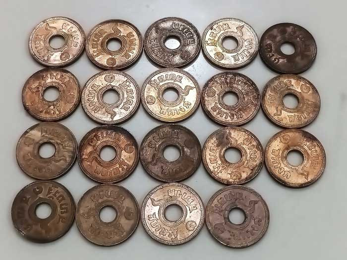 เหรียรัชกาลที่ 5 ปิยะมหาราชา นารายณ์ทรงครุฑ ประทับราหู ออกที่ วัดแหลมแค อ.พานทอง จ.ชลบุรี ปี 2536 |