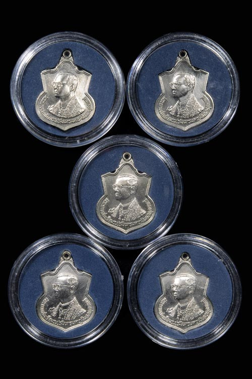 เหรียอาร์มที่ระลึกในหลวงรัชกาลที่ 9 ครบ6รอบ 72 พรรษา ปี2542 จำนวน 5 เหรีย มีกล่องครับ |