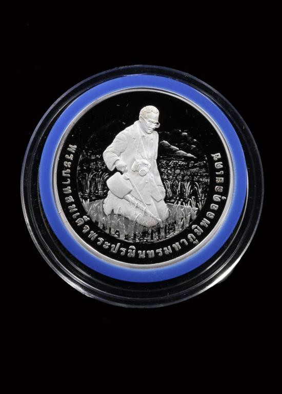 เหรียพระแก้วมรกต เหรียทรงดอกบัว หลัง ภปร. ปี 2547 เนื้อเง ินขัดเงาสามกษัตริย์ ร.พ.ภูมิพล จัดสร้าง |
