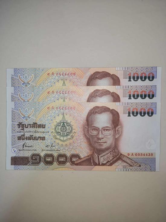ธนบัตรรักาลที่ 9 ไม่ผ่านใช้ ฉบับละ 1000 บาท รวม 3 ฉบับ ตามรูปเคาะเดียว |