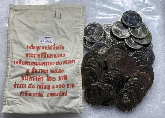 เหรีย 20 บาทที่ระลึกพระราชพิธีมหามงคลเฉลิมพระชนมพรรษา 80 พรรษา จำนวน 50 เหรียสภาพสวยตามรูป |