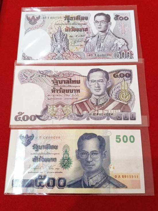 วัดใจเท่าราคาหน้าธนบัตร ++ ธนบัตรหมุนเวียน ร.9 ราคา 500 บาท 3 รุ่น สภาพสวย |