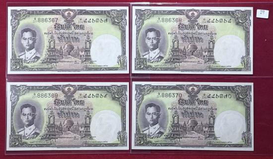 ธนบัตร รัชกาลที่ 9 ชนิดราคา 5 บาท แบบ 9 (โทมัส) สภาพสวย เลขเรียง จำนวน4ใบ เคาะเดียว |