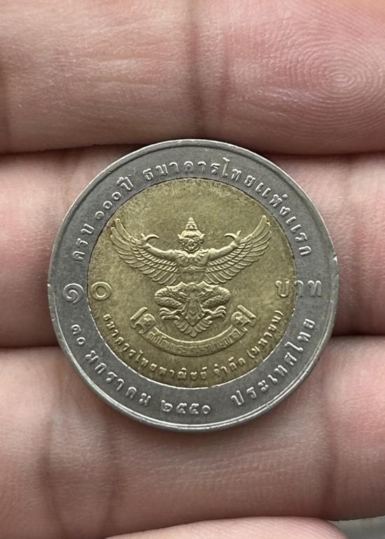 เหรียญ 10 บาท สองสี วาระ ที่ระลึก 100 ปี ธนาคารแห่งแรก ธนาคารไทยพาณิชย์ ปี2550 |