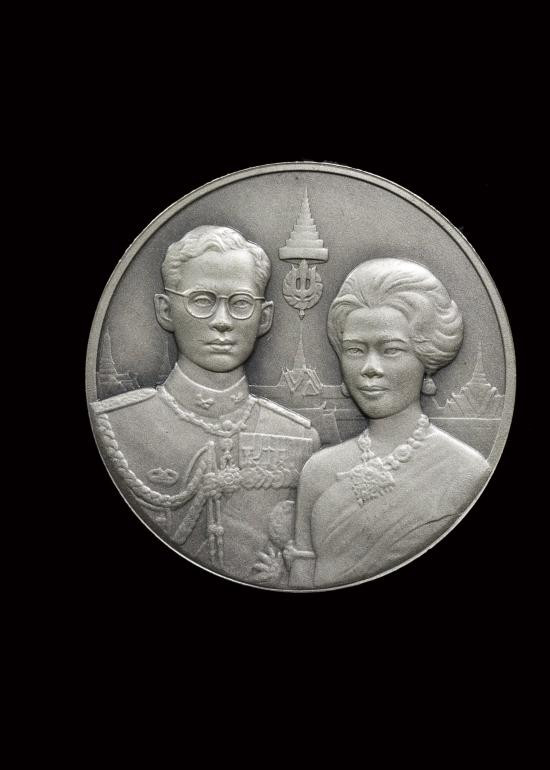 เหรียญทรงยินดี เนื้อเงินหน้ากากทองคำแท้ ในหลวง ร.๙ |
