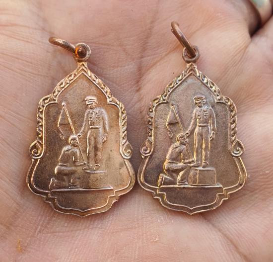 วัดใจเหรียญในหลวง ประดิษฐานอนุสาวรีย์ที่วัดโคกเมรุ นครศรีธรรมราช ฉลองสมโภชกรุงรัตนโกสินทร์ 200 ปี พ.ศ.2525 รวม 2 เหรียญสวยเดิมๆๆ |