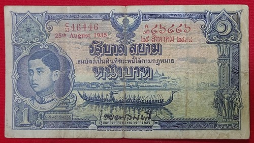 ธนาบัตไถนา ราคา 1 บาท รุ่น 2 สมัยรัชกาลที่7 (ร.7)พ.ศ 2475 |