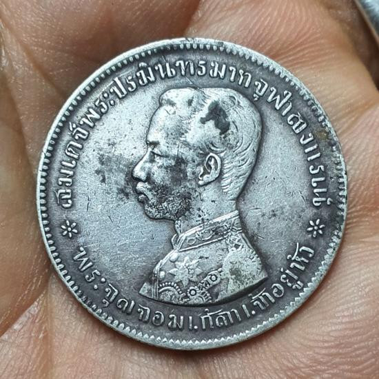 วัดใจเหรียญหนึ่งบาท ร.5 หลังตราแผ่นดิน เนื้อเงิน |