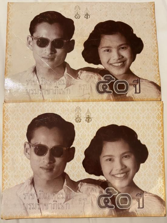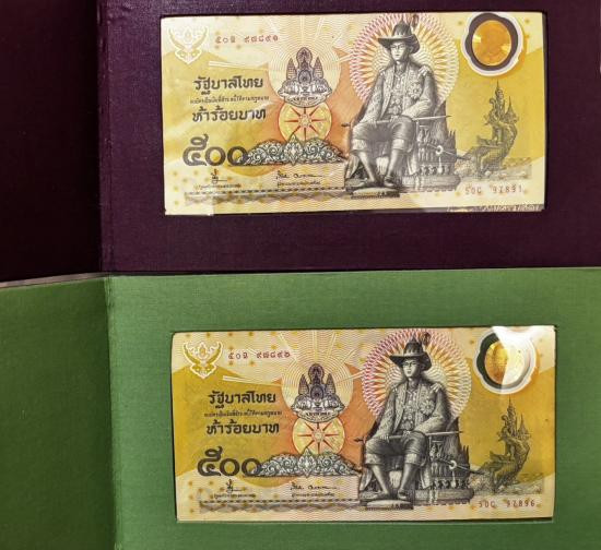 วัดใจ!!!ธนบัตร50บาท 2ชุด ในหลวง พระราชินี ที่ระลึกราชาภิเษกสมรสบรมราชาภิเษก ครบ 50ปี แบงค์ผ้าไหมทอง ครบชุด เลข555,050 สภาพสวย |