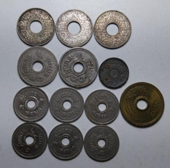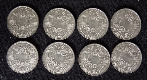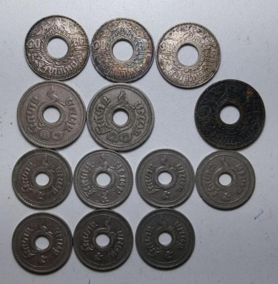 เหรียญ1 สตางค์ ดีบุก ปี2487 8เหรียญ unc หายาก สวยมากวิ้งๆ