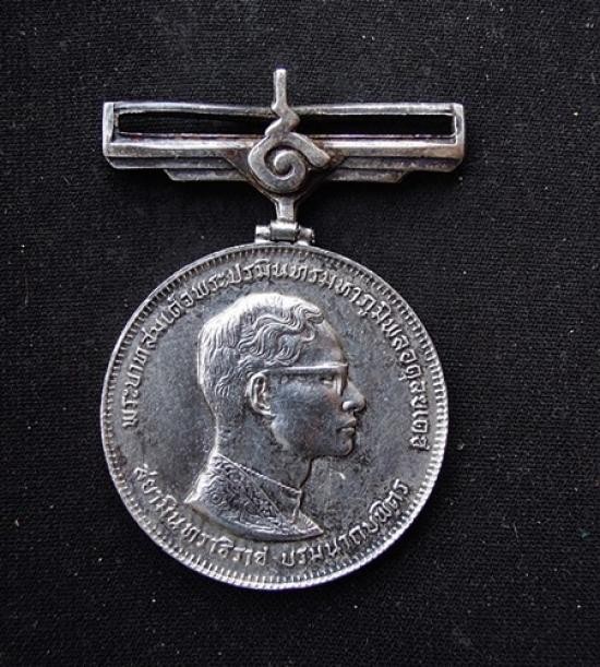 เหรียญพระบรมรูปรัชกาลที่ 5 เนื้อเงิน รุ่นกาญจนาภิเษก หลัง จปร (โมเน เดอร์ ปารีส)