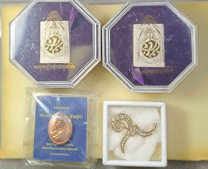พระพุทธปฏิมาสุวรรณภูมิสิริโชค ภปร. เนื้อผง ฉลองสิริราชสมบัติ ๖๐ ปี บริษัทการบินไทยจัดสร้างในปี พ.ศ.2549 กล่องเดิม 2 องค์ + เหรียญทรงผนวช ร.9 +เข็มกลัดเลข๙