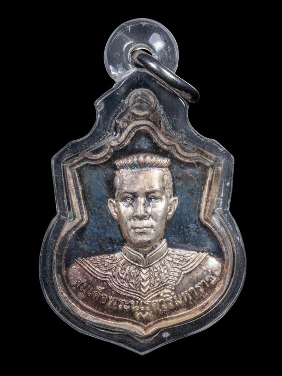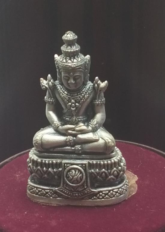พระแก้วมรกต ครอบองค์ ขนาดกลางสูง ๓๕ มม. เนื้ออัลปาก้าชุบเงินรมดำ รพ.ศิริราช จัดสร้าง ปี๔๕ |