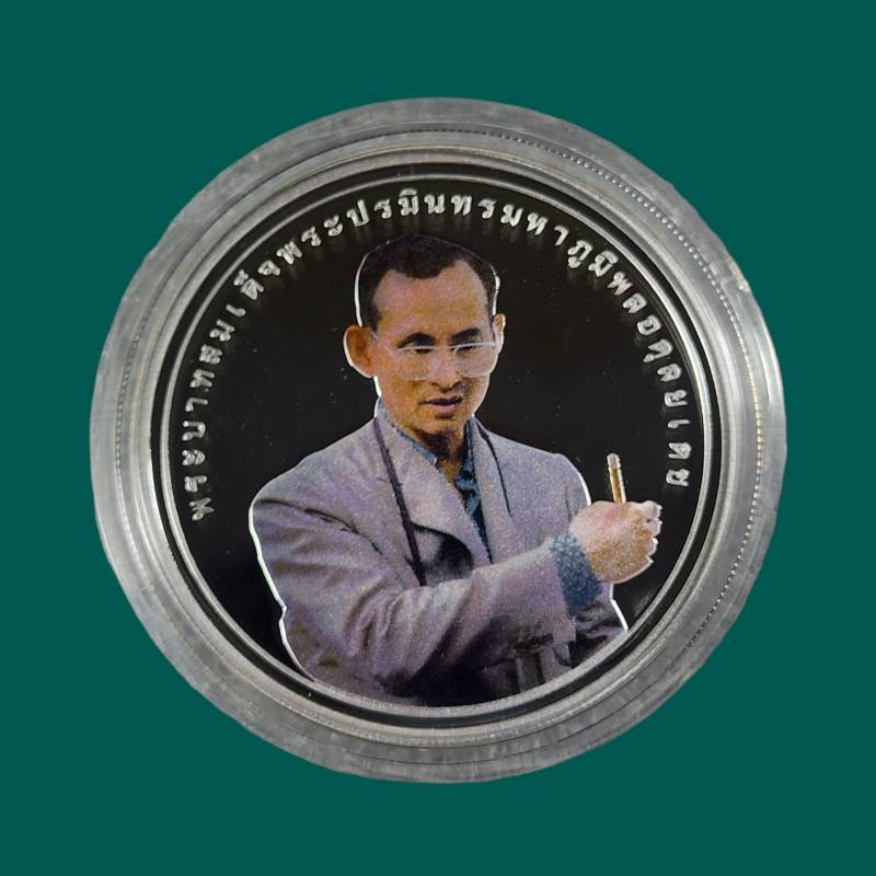 เหรียญกษาปณ์ที่ระลึกเฉลิมพระเกียรติ เนื้อเงิน มูลค่าเหรียญ ราคา 800 บาท พร้อมกล่องเดิม |