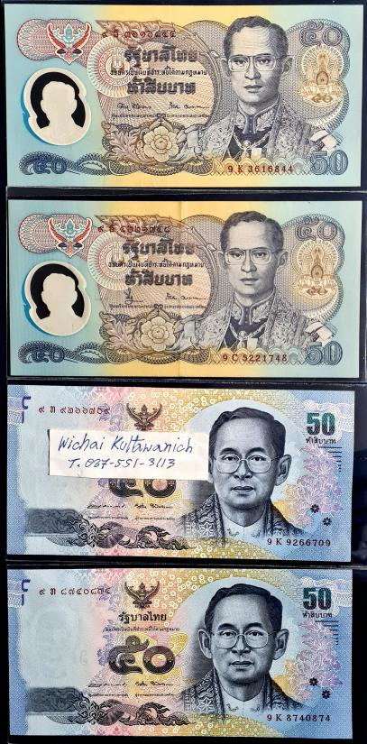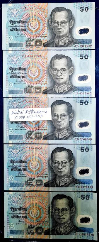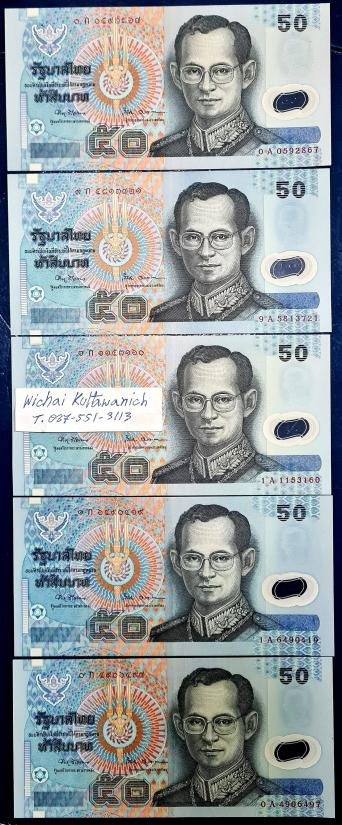 ธนบัตร ร.9 ราคา 50 บาท โพลีเมอร์ ผ่านใช้ จำนวน 5 ใบ มีหมวดพิเศษ พ. 2 ใบ ราคาเบาหวิว |