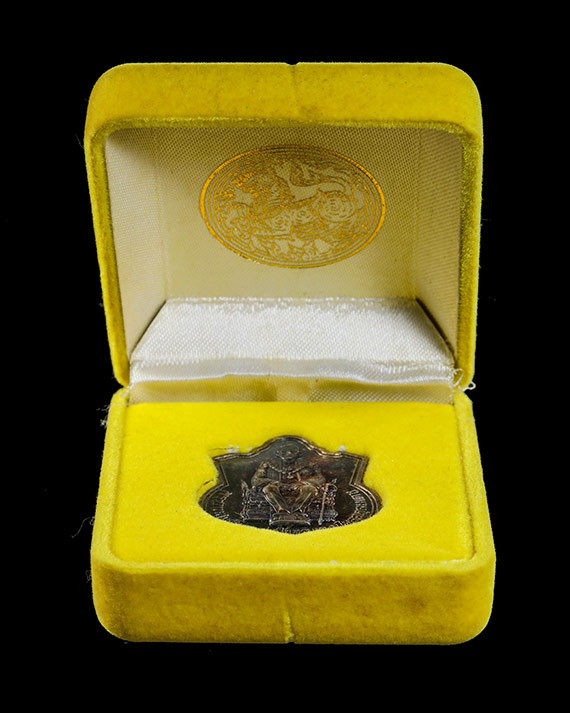 เหรียญกรรมการพระบรมรูปทรงยินดี ร.5 รุ่นมหามงคล ขนาดใหญ่สูง 4.5 ซ.ม. เนื้อเงิน วัดหัวลำโพง ปี 2535 (กล่องเดิม) |