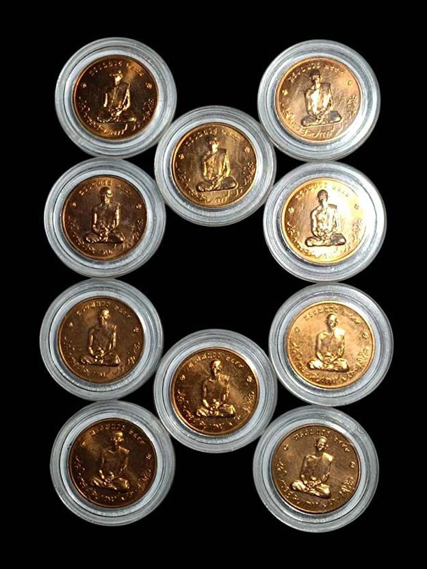 จำนวน 10 เหรียญ เหรียญในหลวงรัชการที่ 9 (ร.9) ทรงผนวช วัดบวรนิเวศวิหาร รุ่น 2 บูรณพระเจดีย์ เนื้อทองแดง ปี 2550 จ.กรุงเทพฯ พร้อมตลับพลาสติกเดิมๆ ผิวไฟแดงๆ เดิมๆ |
