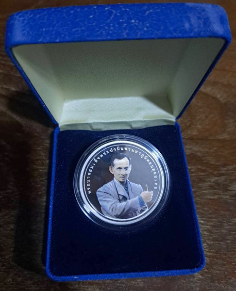 เหรียญทองแดงรมดำ ในหลวงรัชกาลที่ 9 หลัง ภปร ออกปี 2541 จัดสร้างโดย มูลนิธิ พอ.สว. สำหรับพระราชทานให้สำหรับเจ้าหน้าเท่านั้นไม่มีจำหน่ายครับ |