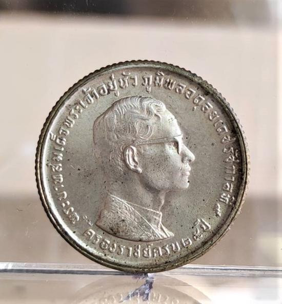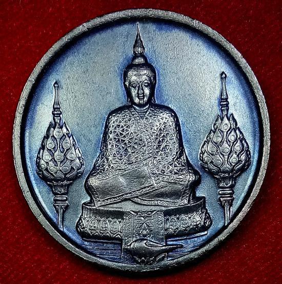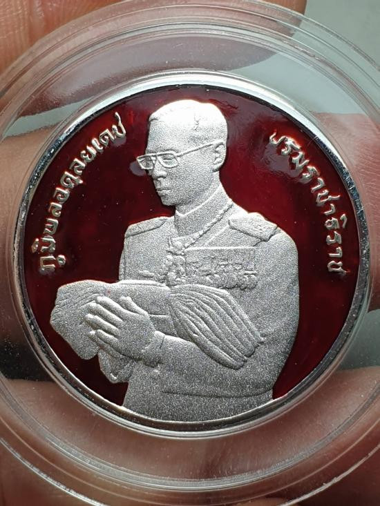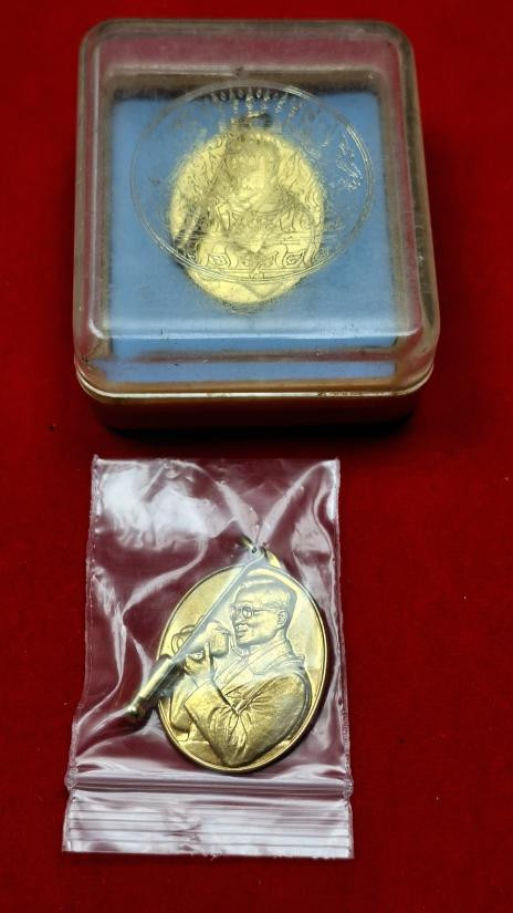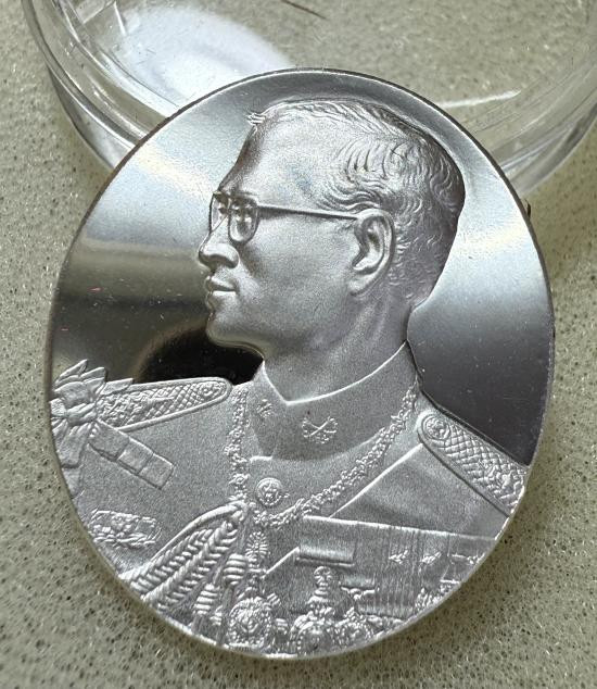 เหรียญเฉลิมพระเกียรติพระบาทสมเด็จพระเจ้าอยู่หัวรัชกาลที่ 9 ในโอกาสฉลองสิริราชสมบัติครบ 50 ปี (กาญจนาภิเษก) เมื่อปี พ.ศ. 2539 เนื้อ3K เลี้ยมเงินยกซุ้ม |