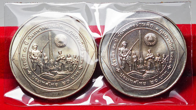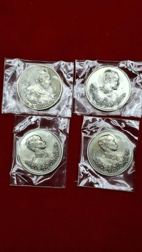 เหรียญพระมหามงกุฎ-พระแสงจักร ร.4 หนึ่งบาทและเหรียญ ร.5 หนึ่งบาท เนื้อเงิน น้ำหนัก 28.97 กรัม |