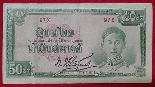 ธนบัตร ของในหลว รัชกาลที่ 8 ชนิดราคา 50 สตางค์ แบบ11 หมายเลข 97X ลายเซ็น ภ.บริภัณฑ์ยุทธกิจ หายากมาก |