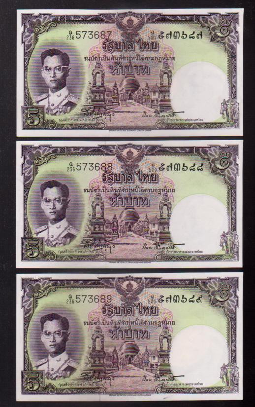 ## ธนบัตร 5 บาท ## โทมัส ## เรียงเลข 3 ฉบับ ## |