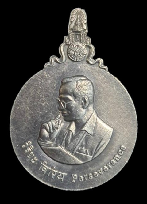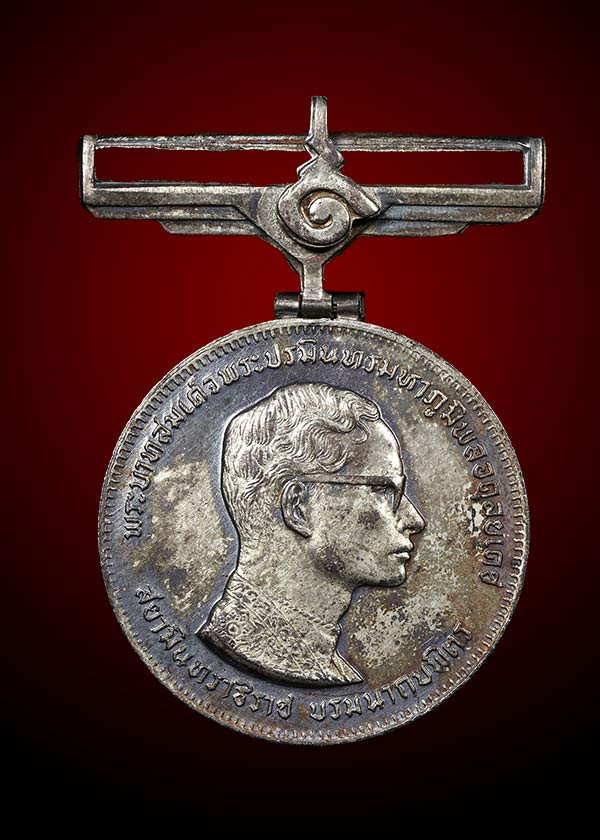 เหรียญที่ระลึกเดินการกุศลเทิดพระเกียรติ รัชกาลที่9 เนื้อเงิน พ.ศ.2527 จัดสร้างโดยกองทัพบก |